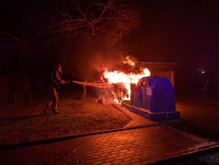 Po przybyciu służb ratowniczych na miejsce zdarzenia okazało się, że przy ulicy Bohaterów Modlina rozwiniętym pożarem objęte były duże pojemniki na odpady w pobliżu wiaty śmietnikowej. Strażacy natychmiast przystąpili do walki z ogniem podając prąd wody w natarciu na palącą się powierzchnię. Dzięki interwencji strażaków pożar został ugaszony i nie zdążył się rozprzestrzenić na pobliską wiatę.