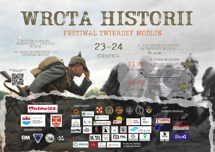 W dniach 21–24 sierpnia 2025 roku w Twierdzy Modlin odbędzie się festiwal historyczny „Wrota Historii”, poświęcony wydarzeniom I wojny światowej. W programie przewidziano piknik historyczny, wykłady, ekspozycje muzealne oraz inscenizację zdobycia twierdzy przez wojska Cesarstwa Niemieckiego w 1915 roku. Festiwal upamiętni 110. rocznicę tych wydarzeń. Organizatorzy zapraszają także na Zlot Detektorystów, który odbędzie się równolegle z główną częścią wydarzenia. Festiwal objęty został patronatem samorządów lokalnych oraz instytucji wojewódzkich.