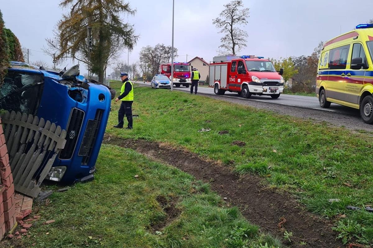 Po przybyciu służb na miejsce zdarzenia okazało się, że kierujący samochodem marki Suzuki z niewyjaśnionych przyczyn zjechał na przeciwległy pas jezdni, a następnie uderzył w latarnię i ogrodzenie posesji, w wyniku czego dachował w przydrożnym rowie.