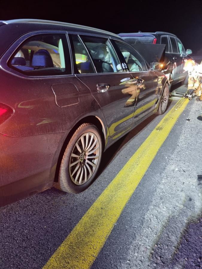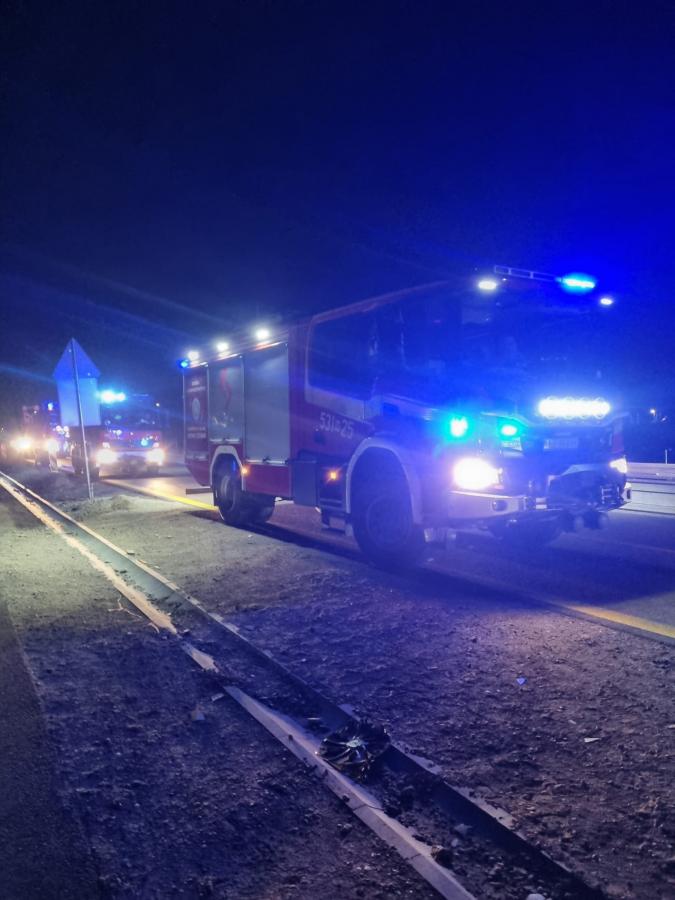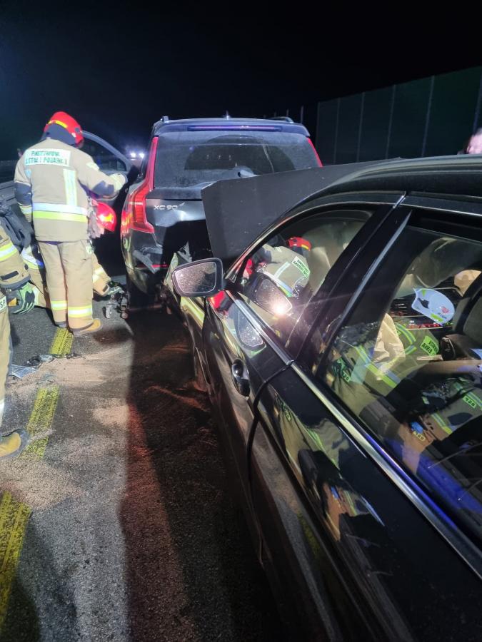 Zdjęcia przedstawiają zdarzenie drogowe na trasie S7 w Kazuniu Nowym, gdzie doszło do kolizji między BMW a Volvem. Służby ratownicze szybko interweniowały, nie było ofiar. Strażacy i policja zabezpieczyli teren, a kierowca BMW otrzymał mandat. Po wyciągnięciu uszkodzonych pojazdów akcja ratunkowa zakończyła się północy.